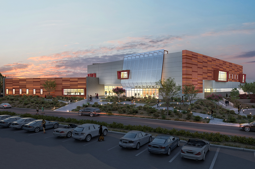 In response to the critical shortage of healthcare professionals in Southern Nevada, the College of Southern Nevada (CSN) and Nevada State College (NSC) collaborated to develop a joint-use facility on CSN’s Henderson Campus. With support and funding from the Nevada State Public Works Division, the team selected SH Architecture and KNIT to design the new Betty Engelstad School of Health & Sciences. The state-of-the-art building brings together advanced learning environments for both institutions.