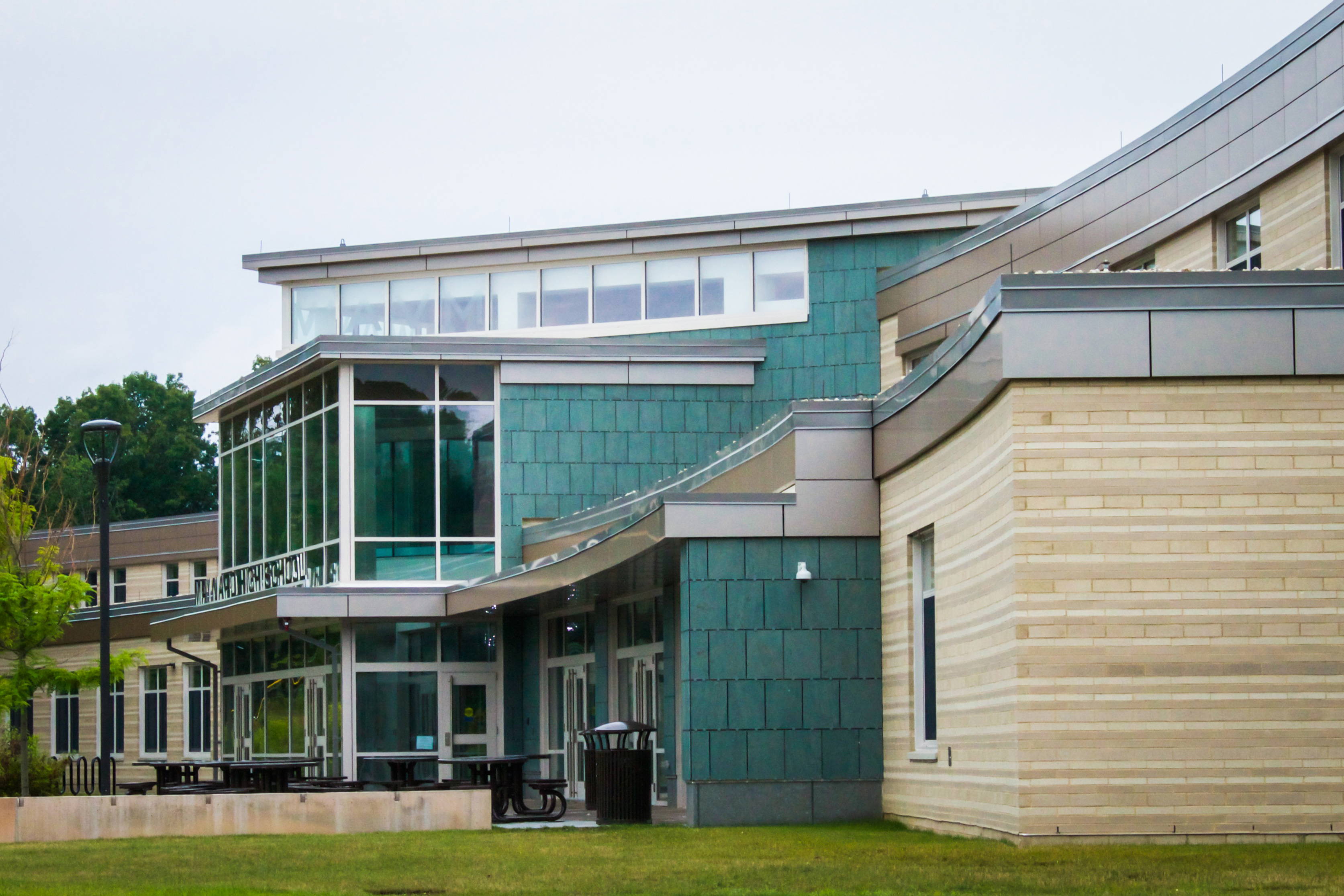 Maynard High School showcases an impressive stone Rainscreen façade using an ECO Cladding rainscreen clip system designed in conjunction with Tappe Associates of Boston. The clips were custom designed for this project and coated to match other trim sections of the building. This building represents a fantastic model for a collaborative combination of materials.
