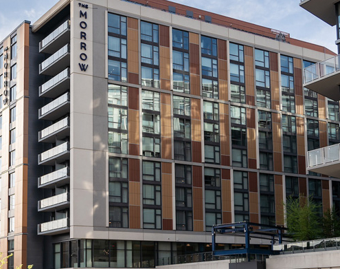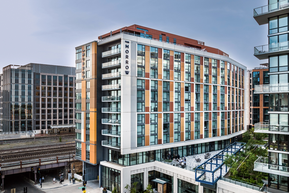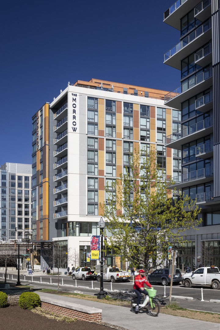 Part of the larger Armature Works redevelopment in Washington, DC’s NoMa district, The Marrow Hotel brings refined hospitality to a reimagined industrial site. Designed by Shalom Baranes Associates Architects, the project sits atop a shared podium structure that elevates it above the adjacent Amtrak rail lines. The façade features Swisspearl HDFC panels, supported by ECO Cladding subframing and distributed through Cladding Corp, delivering a high-performance, visually striking rainscreen envelope. The hotel contributes to the area’s transformation with active ground-floor retail, rooftop amenities, and proximity to a future pedestrian tunnel linking directly to the NoMa/Gallaudet Metro station.