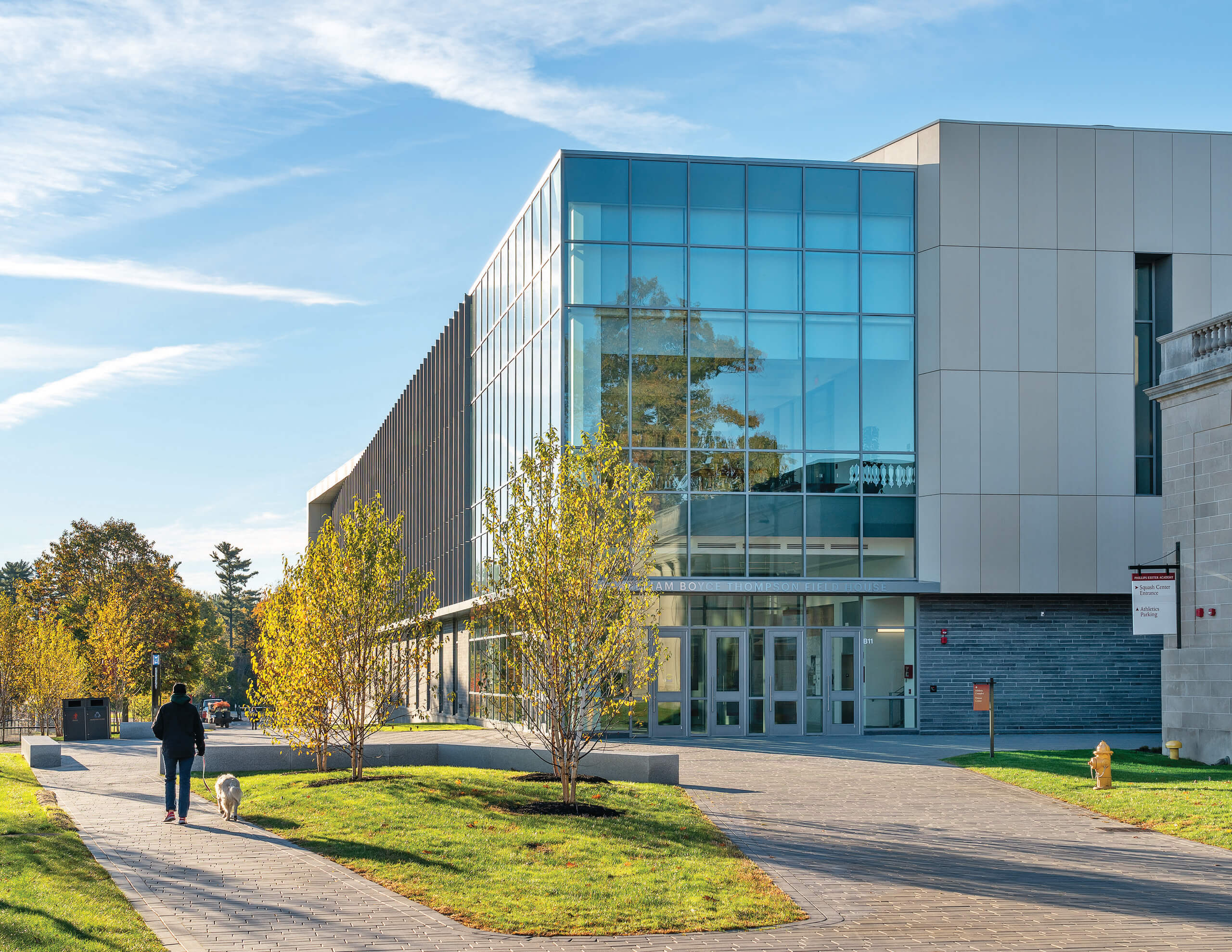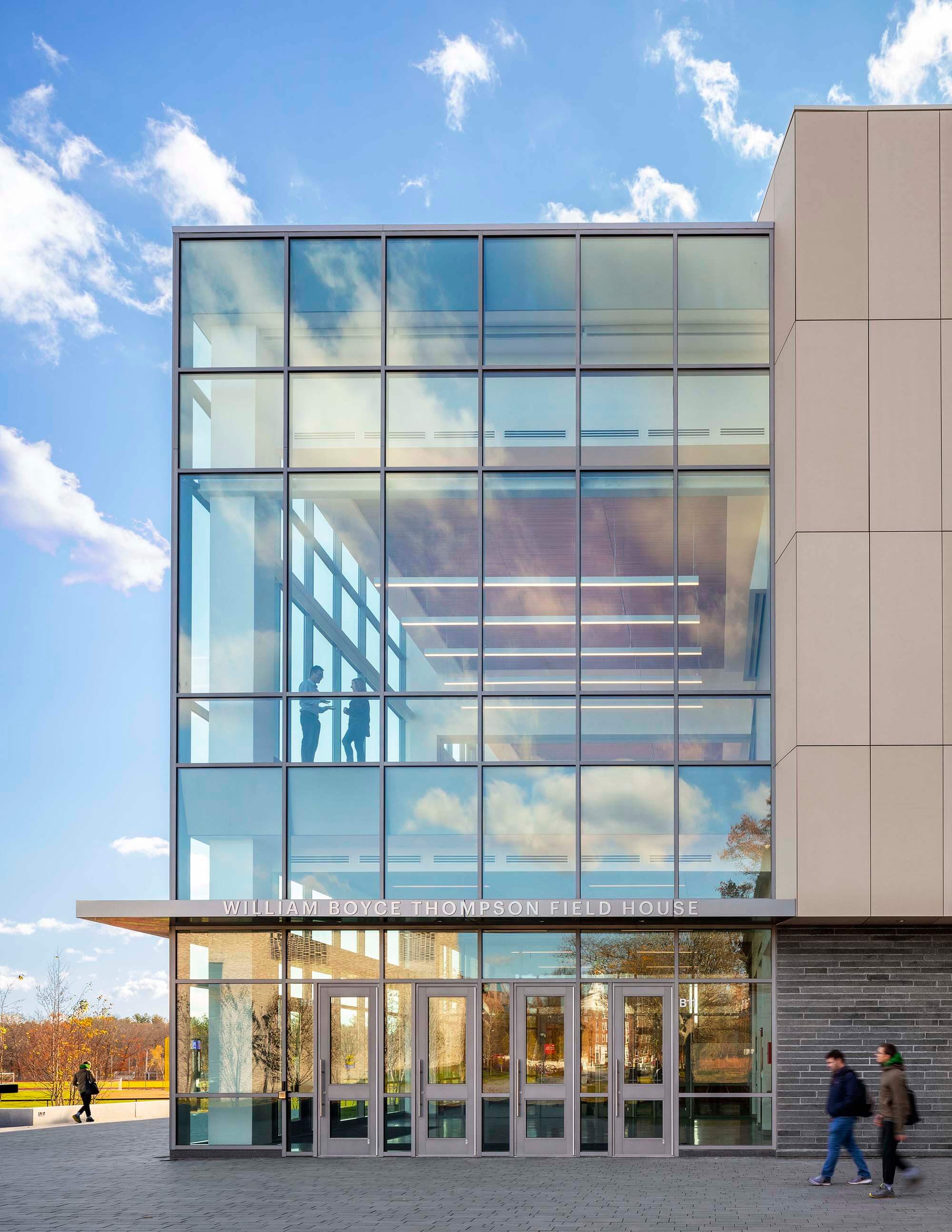Recognized for its sustainable design, the Thompson Field House at Phillips Exeter Academy is a collegiate-level facility that supports multi-team athletic competitions and wellness programs. Designed by ARC, the building plays a central role in the campus’s transformation, offering flexible spaces that engage the entire school community. Its UPHC panel façade used ECO Cladding systems to create subtly curves from north to south, aligning with adjacent walkways to create framed campus views and reinforce thoughtful landscape integration.