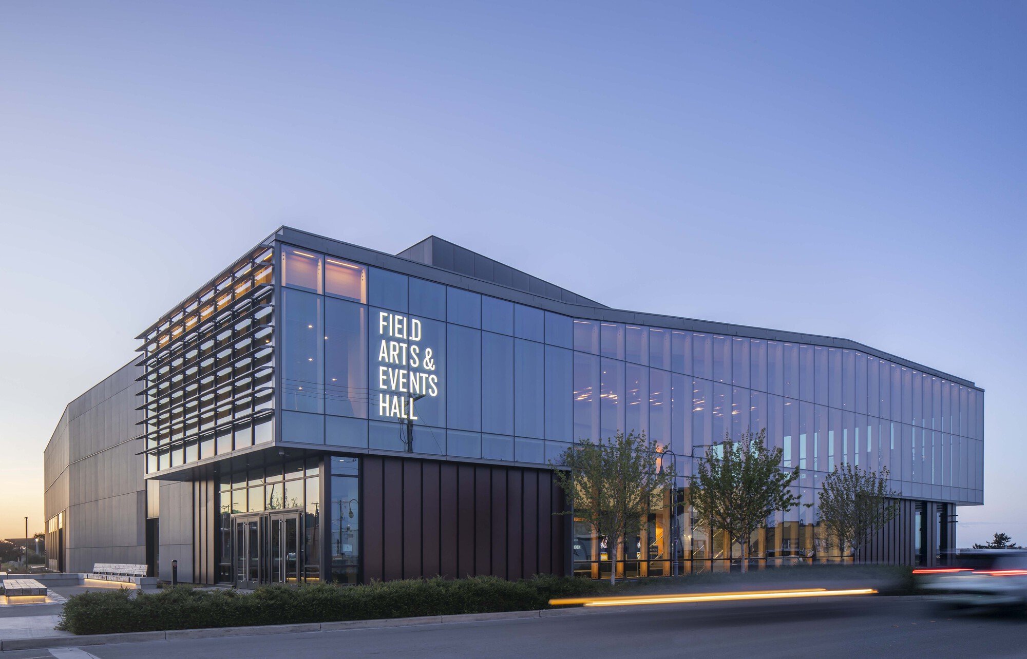 The Field Arts & Events Hall is a striking new cultural landmark on the Port Angeles waterfront—designed to support local arts organizations and serve as a community gathering place. As the first of three buildings planned for the Port Angeles Waterfront Center, the hall features a performance venue, fine art gallery, conference center, and café, all anchored by sweeping views of the Olympic Mountains and the Strait of Juan de Fuca.