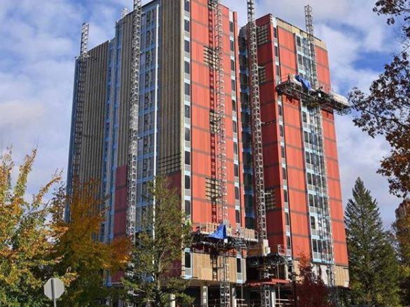 The facade pairs ECO Cladding’s attachment system with terracotta shingles, blending tradition with innovation. Built with mass timber, geothermal systems, and full material reuse, the project sets a new standard for sustainable campus living.